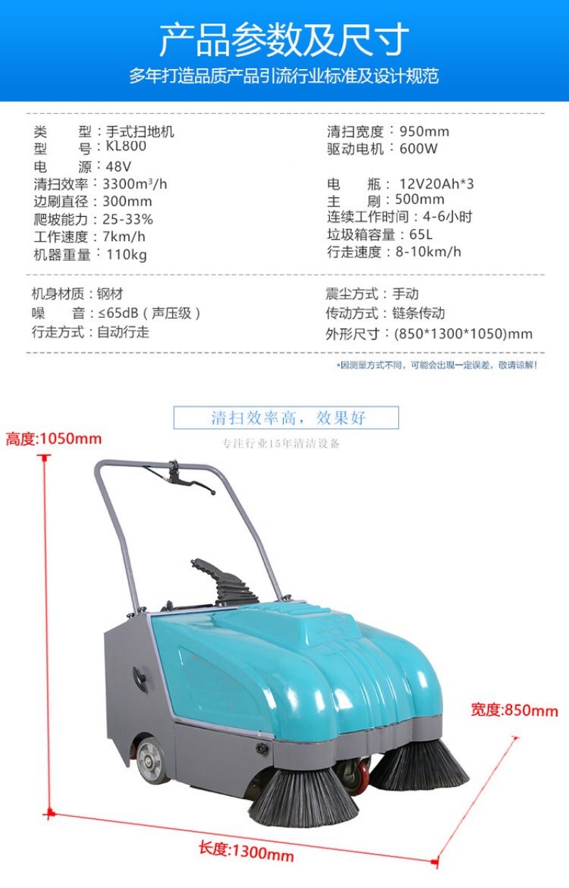 4、清扫速度不易过快,只要人慢慢的推着行走就行,速度太快,清扫的效果就会不好;